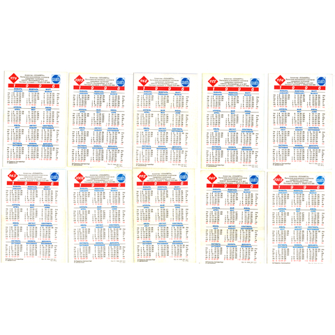 Карманный календарик 1996 г. 10 шт. Мультики XF