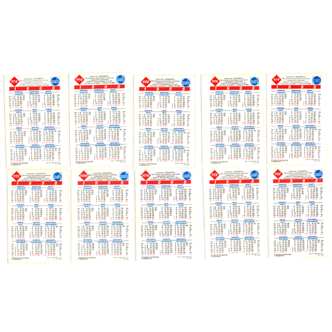 Карманный календарик 1996 г. 10 шт. Мультики XF