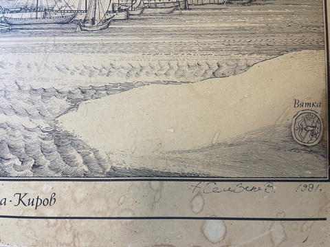 Картина- эстамп художника "Вид губернского города Вятка" автор А.В.Селезнев.