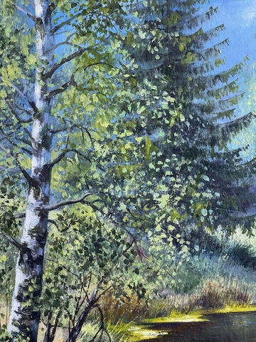 Картина маслом на холсте "Летний день" в раме 47,5 х 37,5 см. художник Владимир Петряшев. 2002 год