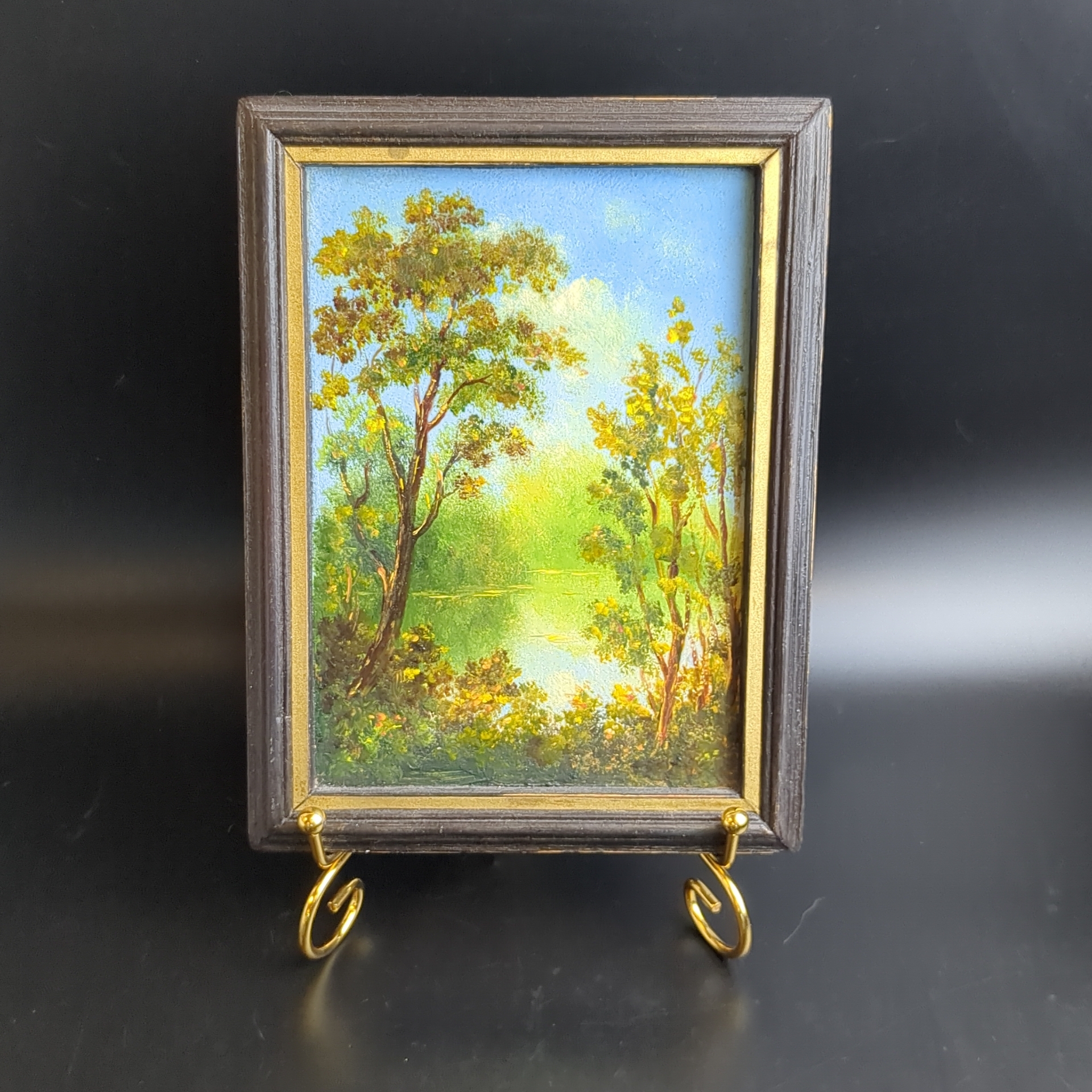 Картина маслом, живопись Лесной пейзаж - Ю. Левандровский 1998 год. Размер картины 21 х 15,8 см с учетом рамы. Хорошая тонкая работа художника