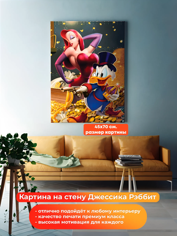 Картина на холсте на стену для интерьера Джессика Рэббит и Скрудж Макдак. Мотивация. Размер: 45 на 70 см.
