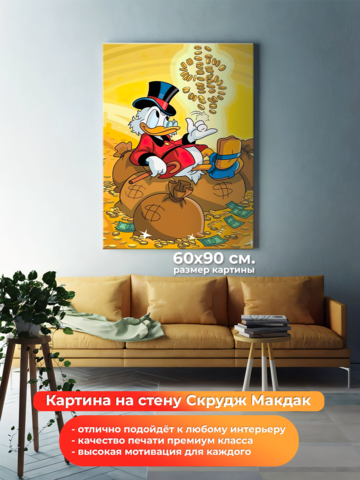 Денежные знаки и мультипликационные герои картины Скрудж Макдак понравится не только взрослым, но и детям.