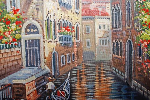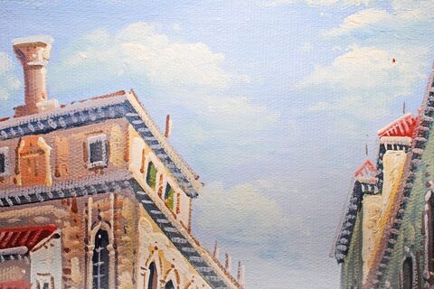 Картина с городским пейзажем. Италия. С подписью автора. Холст, масло (В футляре)