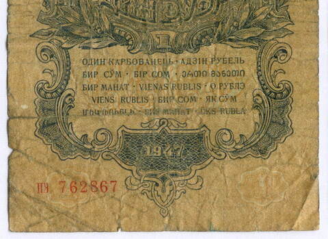 Казначейский билет 1 рубль 1947 год (15 лент) пэ 762867. G-
