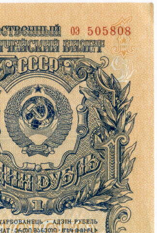 Казначейский билет 1 рубль 1947 год (16 лент) оэ 505808. UNC (из пачки)