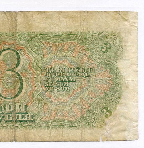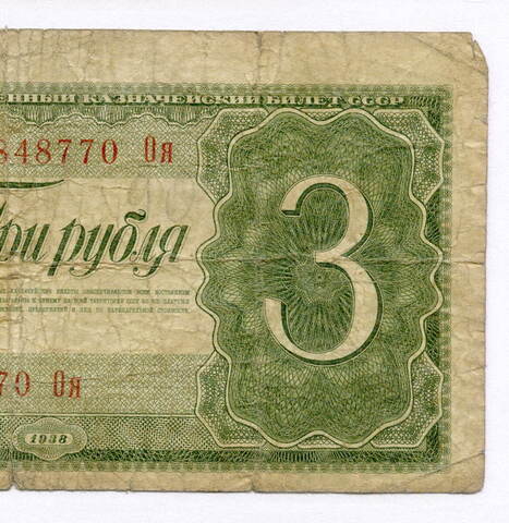 Казначейский билет 3 рубля 1938 год 848770 Оя. G
