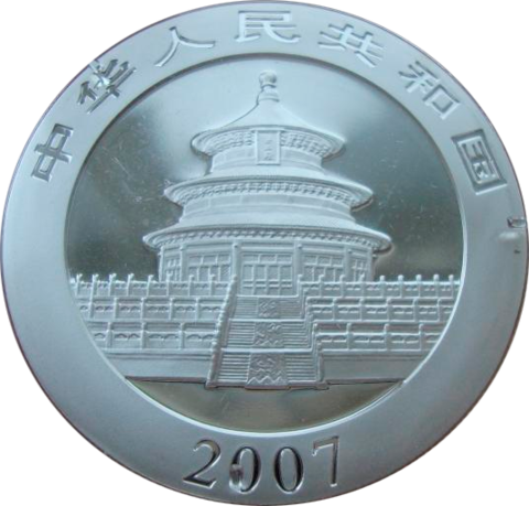 Китай 10 юаней 2007 Панда Серебро