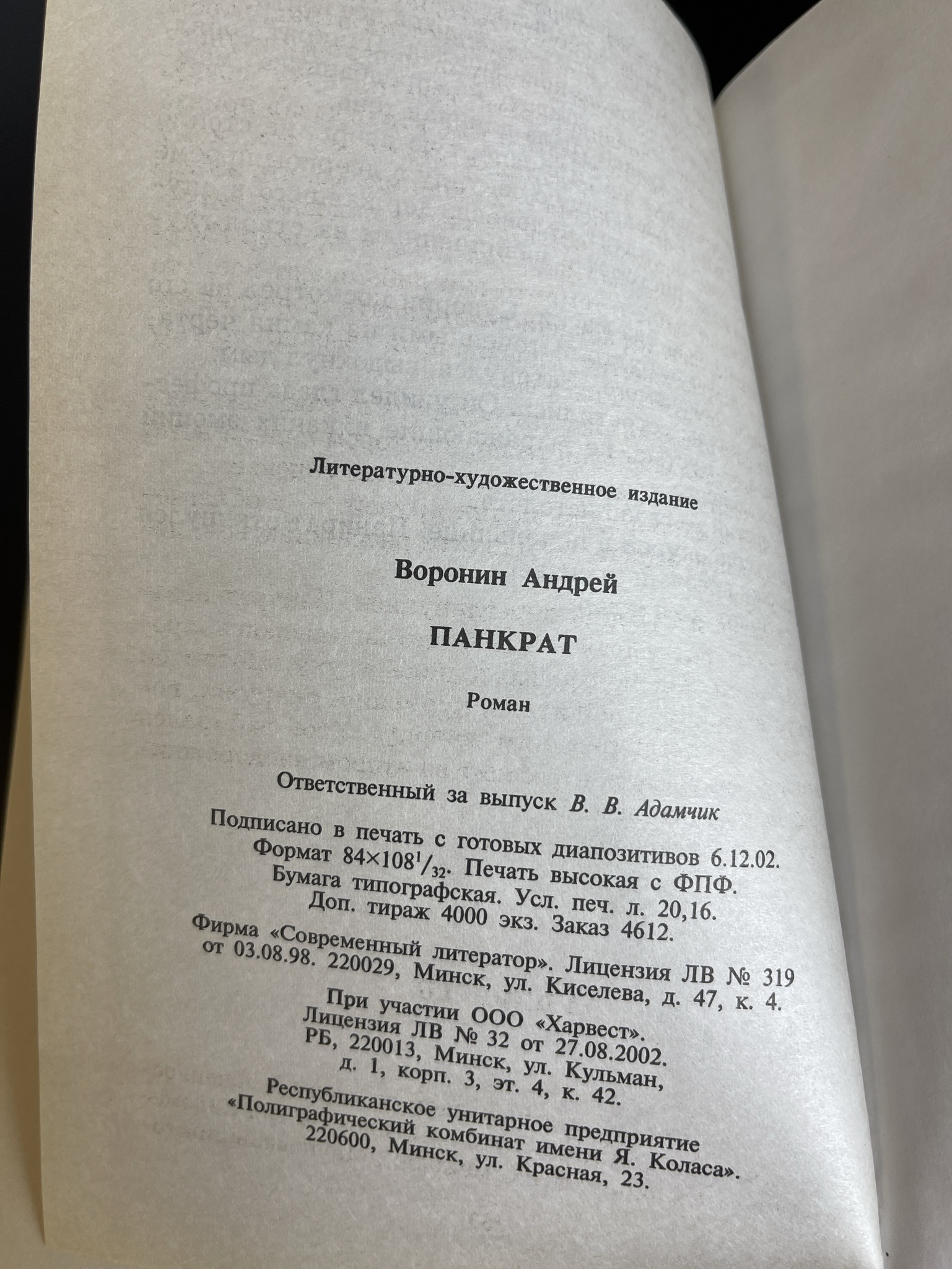 Книга Андрей Воронин. Панкрат. Минск. Современный литератор, 2003