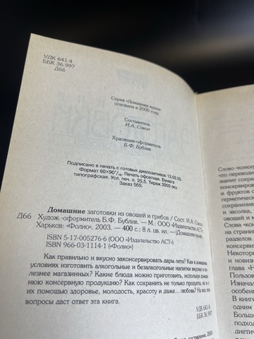 Книга Домашние заготовки из овощей и грибов изд. 2000 г. Состояние на фото