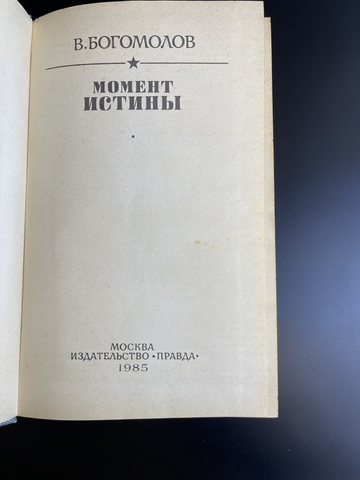 Книга В. Богомолов. Момент истины. Роман, повести, рассказы.- М., Правда, 1985 год.- 560 с. Есть следы использования. Состояние на фото