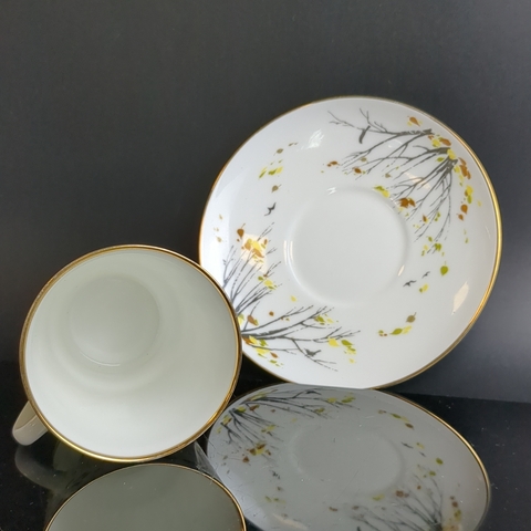 Кофейная пара "Листопад", "Осень", костяной фарфор клеймо ЛФЗ, сложная композиция, 150 мл., декор, золочение, СССР 1970-1990 гг