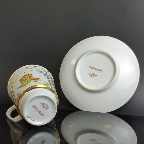 Состояние на фото. Высота чашечки - 8 см, диаметр блюдца - 12 см.