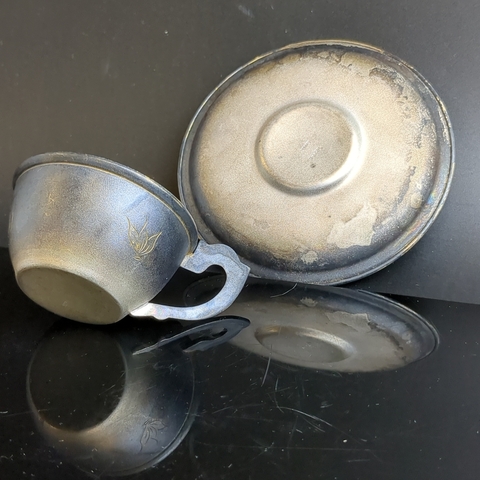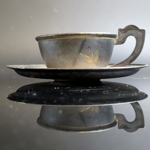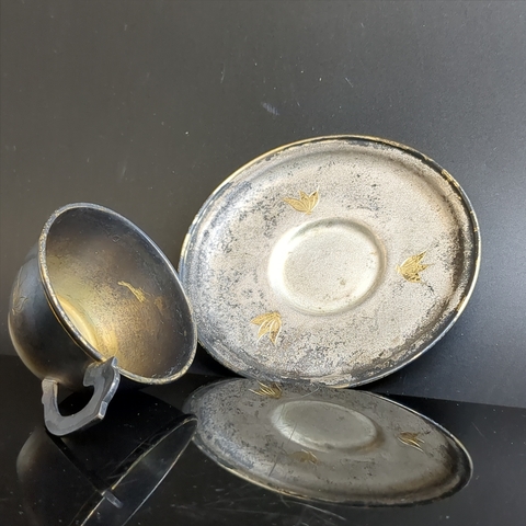 Кофейная пара с цветочным декором, мельхиор (медь-никель), золочение, гравировка, травление, Мстерский завод художественных изделий «Ювелир», СССР, 1960-1980 гг.