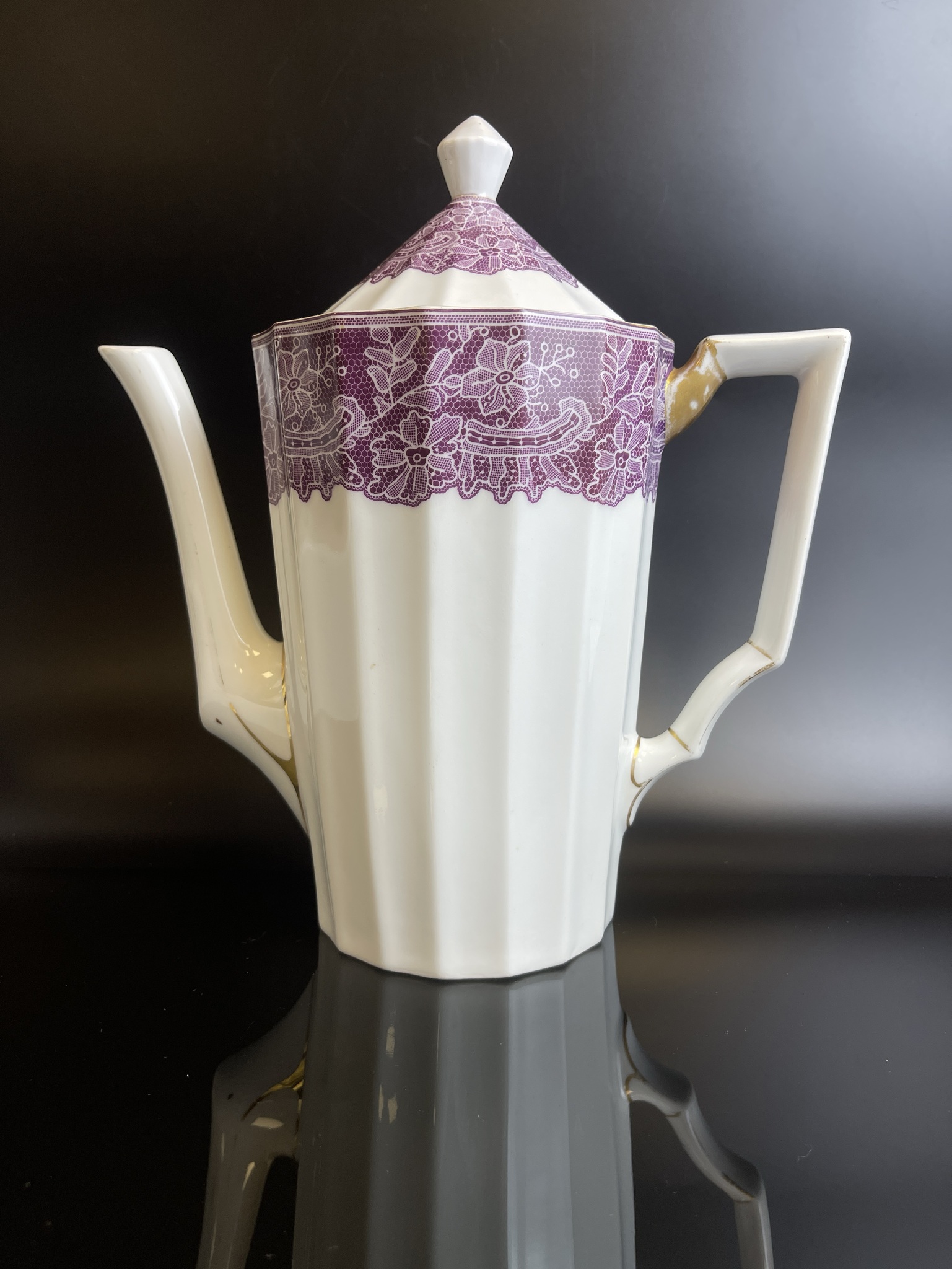 Кофейник антикварный большой фарфор клеймо "ECHT" TUPPACK Brüsseler "Edelspitzen" TIEFENFURT, винтаж, позолота, 1950-1980 гг. Высота - 27 см. Присутствуют следы использования - стерта часть позолоты, состояние на фото