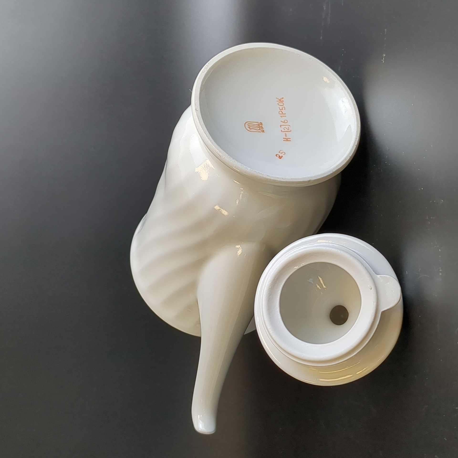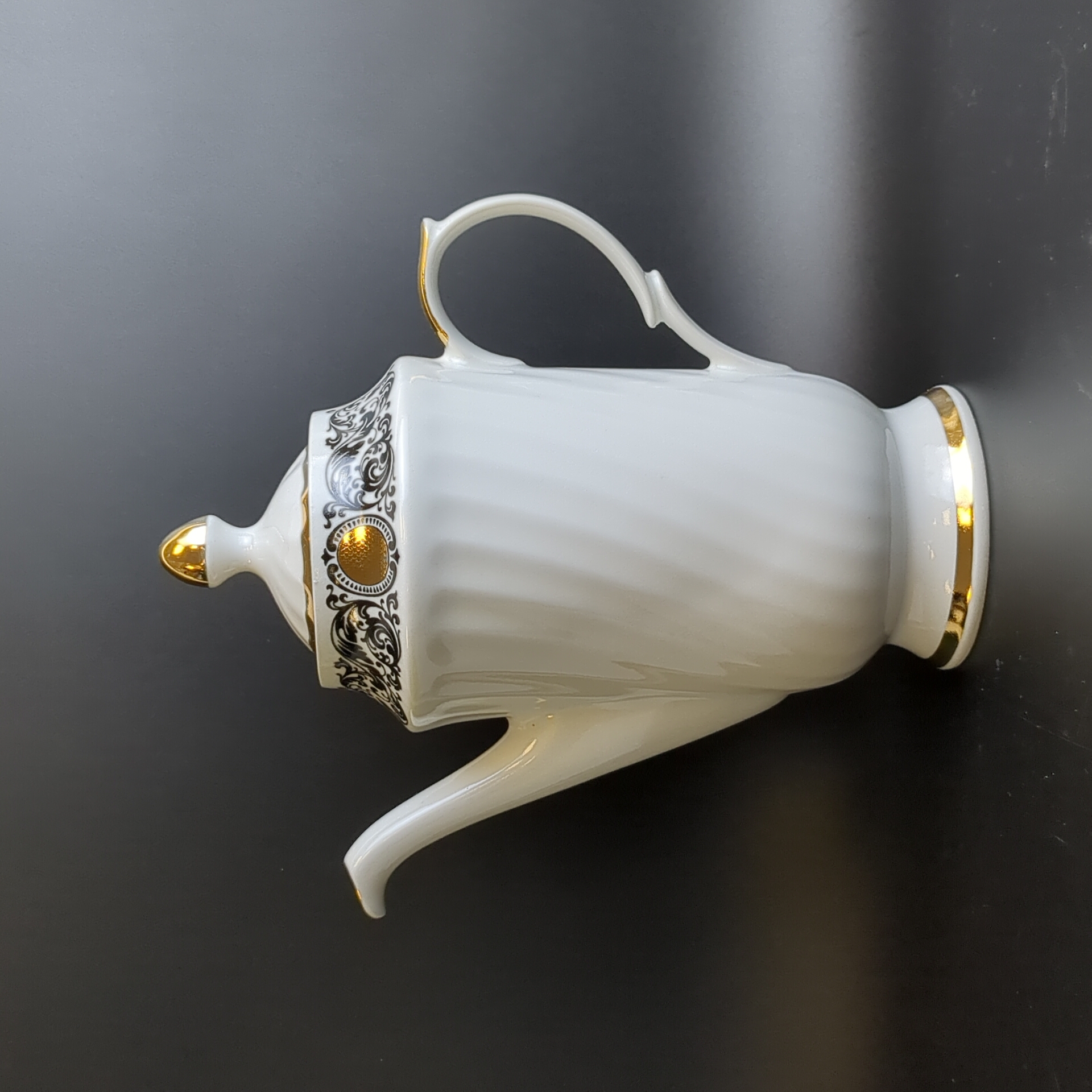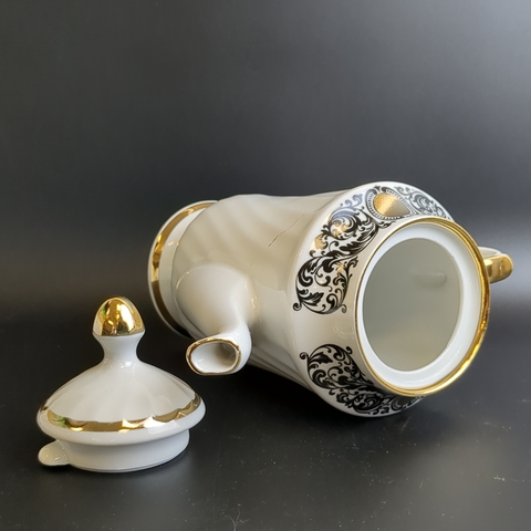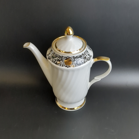 Кофейник фарфоровый, декор, золочение, винтаж времен СССР, высота - 22 см, Рига 1980-е гг. Состояние и комплектация на фото, присутствуют незначительные следы бытования.