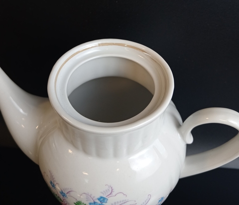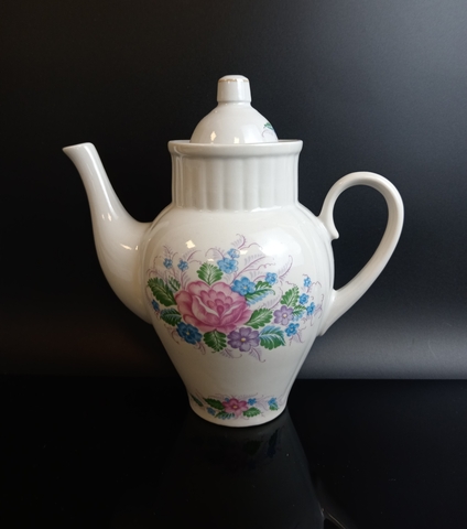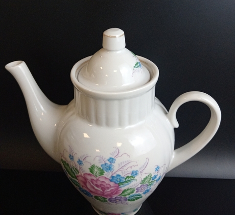 Кофейник заварочный фарфоровый высота - 20 см, роспись цветы, Прокопьевский ФЗ, винтаж СССР 1970-1990 гг. Присутствуют следы использования - состояние на фото
