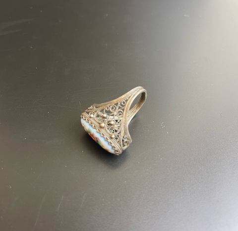 Кольцо винтажное финифть "Сударушка", советская бижутерия. Внутренний диаметр - 17 мм.