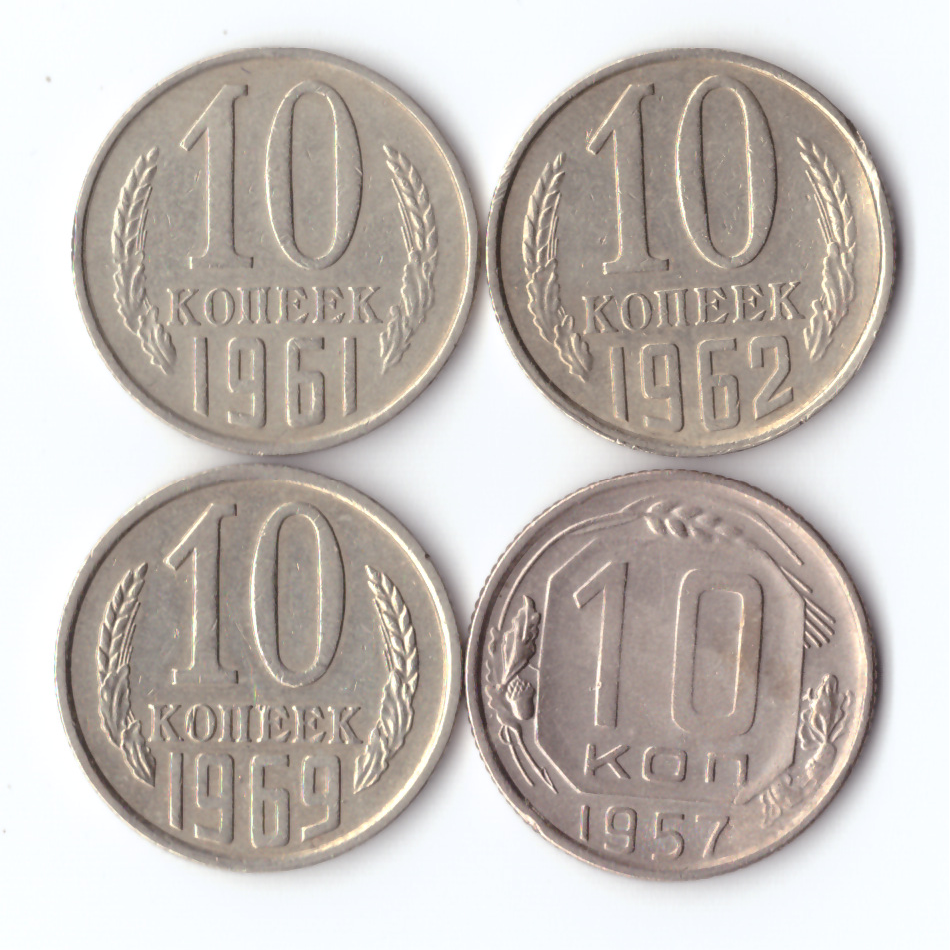 Комплект монет (4шт.) 10 копеек, 1957,61,62,69г, XF