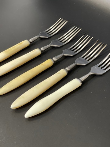 Комплект 5 вилок СССР Нержавейка. Кость . Металл нержавейка. Ручка Кость. 1970-1990 гг. 1970-1990 гг.