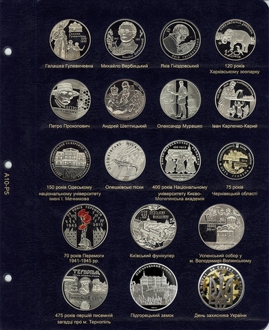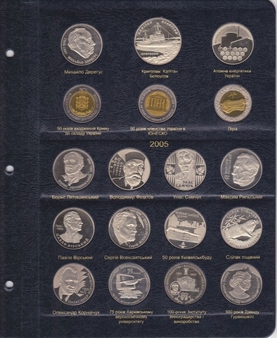 Данный альбом является первым в серии юбилейных монет Украины. В альбоме собраны все памятные монеты из недрагоценных металлов, за период с 1995-2005 года, номиналом 2 и 5 гривен. Альбом составлен в хронологическом порядке.