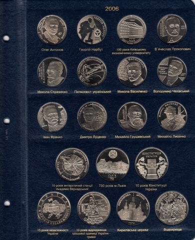 Данный альбом является продолжением серии альбомов юбилейных и памятных монет Украины. В альбоме собраны все памятные монеты из недрагоценных металлов номиналом в 2 и 5 гривен за период с 2006 по 2012 годы. Монеты данной серии расположены по годам выпуска.
