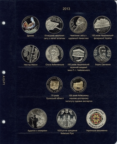 Альбом является продолжением серии альбомов юбилейных и памятных монет Украины. Этот том включает медно-никелевые и биметаллические памятные монеты, начиная с 2013 года. Монеты данной серии расположены по годам выпуска. Все ячейки в альбоме подписаны на украинском языке.