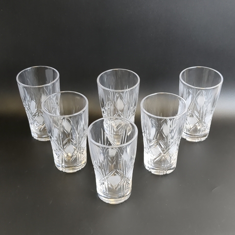 Комплект хрустальных стаканов СССР - 6 штук. Высота 12 см., Объем 200 граммов