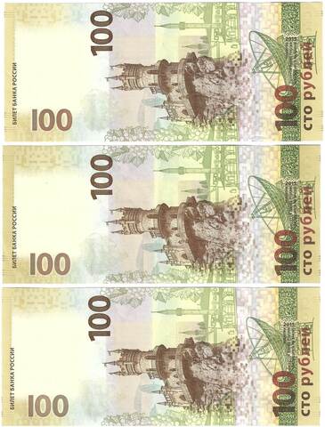 Комплект купюр 100 рублей 2015 ''Крым'' все серии кс, КС, СК (UNC)