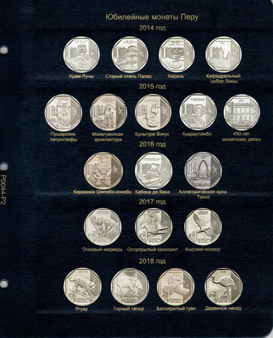 Для хранения памятных монет Перу с 2010 по 2018 издательство КоллекционерЪ выпустило комплект листов.
