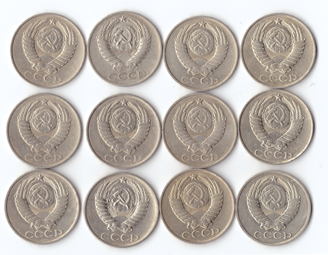 Комплект монет (12шт.) 50 копеек, 1964,74,79,80,81,82,83,84,85,86,87,88г, UNC