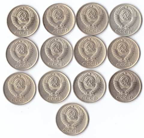 Комплект монет (13шт.) 10 копеек, 1980-91л,91м. В блеске., XF-UNC