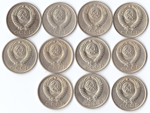 Комплект монет (11шт.) 15 копеек, 1980-91гг. Нет 1983г, XF-UNC