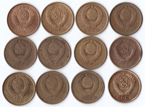 Комплект монет (12шт.) 5 копеек, 1961,75,78-82,86,87,88,90,91л., VF