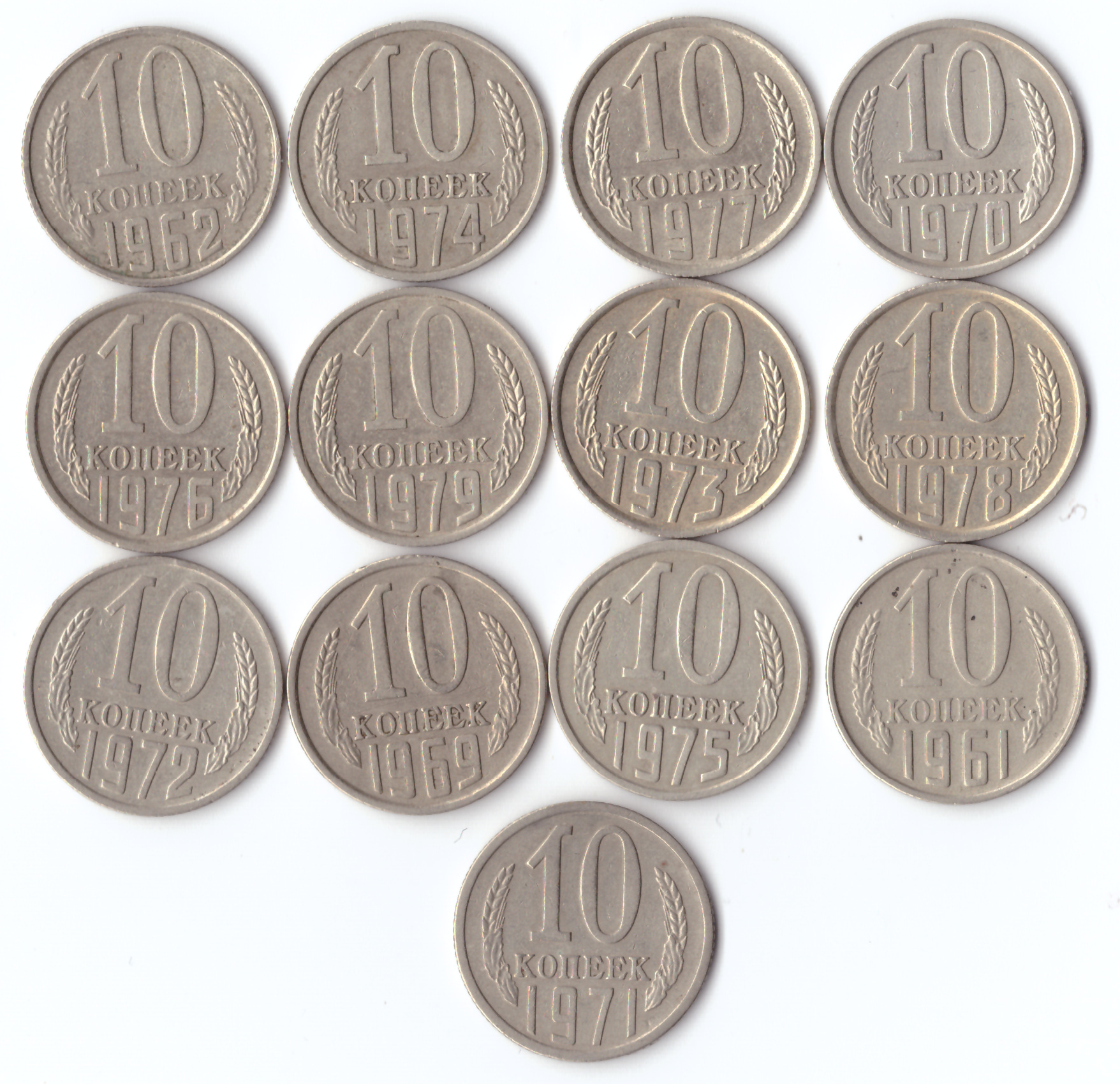 Комплект монет (13шт.) 10 копеек, 1961,62,69,70-79г, XF
