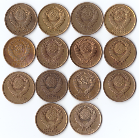 Комплект монет(14шт.) 5 копеек, 1961,75,78-82,84-88,90,91л, VF-XF