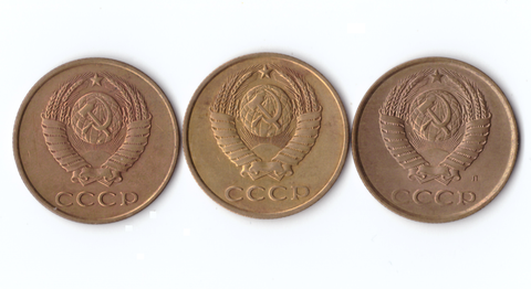 Комплект монет(3шт.) 3 коп, 1986,87,91г, XF-AU