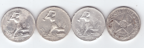 Комплект полтинников 50 копеек 1922, 1924, 1925, 1926 г. (F-VF)