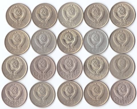 Комплект (20шт.) 20 копеек 1953-56,61,62,78-91м, XF-UNC
