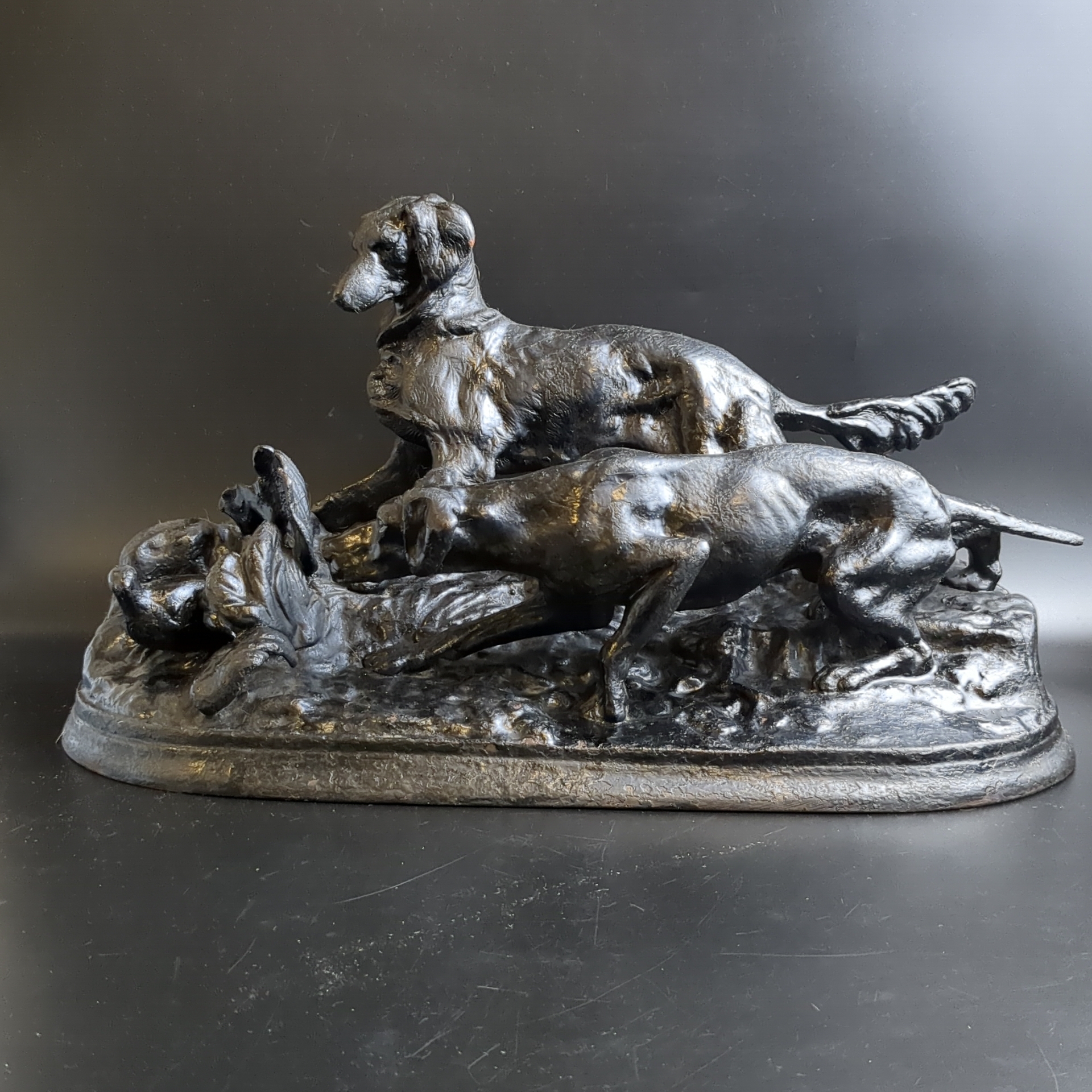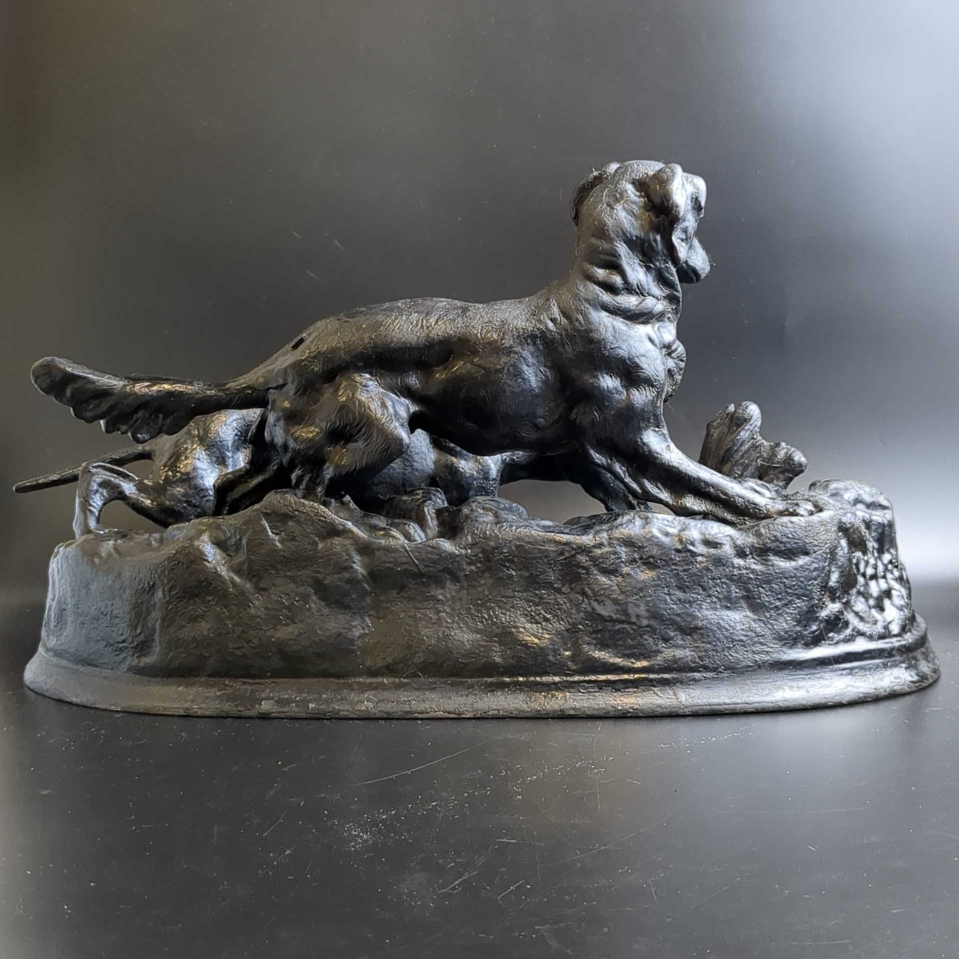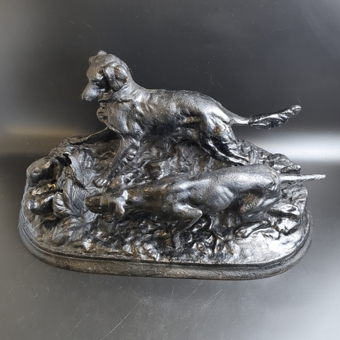 Композиция "Охота на куропатку" (по модели скульптора Пьера-Жюля Мэна, выполненной в 1848 г.), чугун, крашение, Кусинский литейно-машиностроительный завод (КЛМЗ), СССР, 1959 г.
