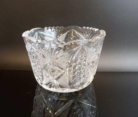 Конфетница хрустальная с геометрическим декором, алмазная грань, винтаж СССР 1970-1990 год .Высота - 10.5 см, диаметр - 15 см. Присутствуют следы использования - состояние на фото