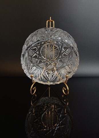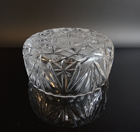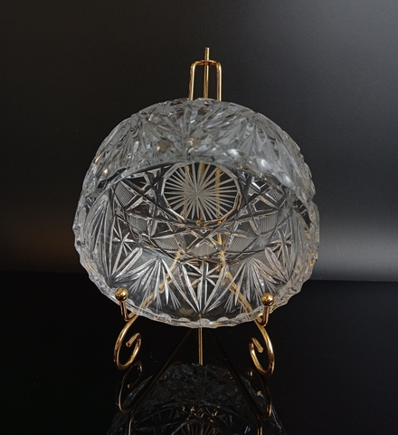 Конфетница хрустальная винтажная, геометрический узор, СССР 1970-1990 гг. Высота - 6 см, диаметр - 13.5 см. Присутствуют следы использования - состояние на фото.