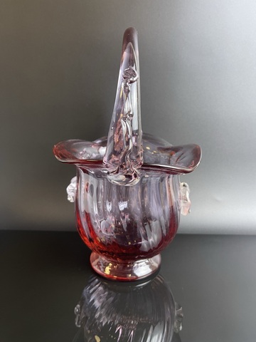 Конфетница в форме корзиночки лилового оттенка, стекло, гутная техника, винтаж СССР, 1970-1990 гг. Высота - 23 см, ширина -18.5 см, глубина - 14.5 см. Незначительные следы использования, состояние на фото