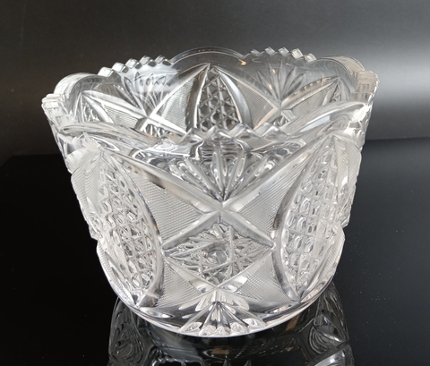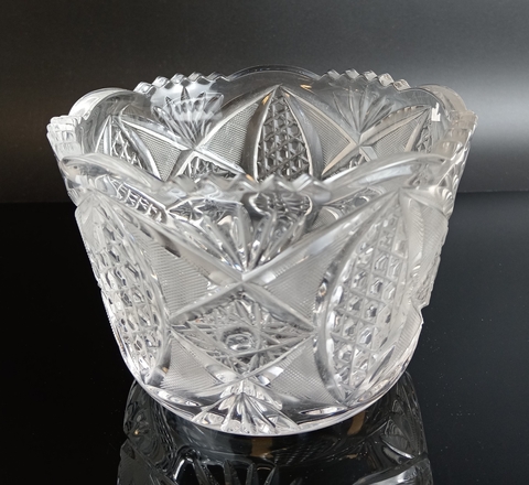 Конфетница винтажная с рельефным геометрическим декором хрусталь, времен СССР 1970-1990 гг.