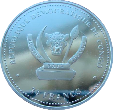 Конго 20 франков 2020 Гремучая змея Rattlesnake Хищники BU Серебро