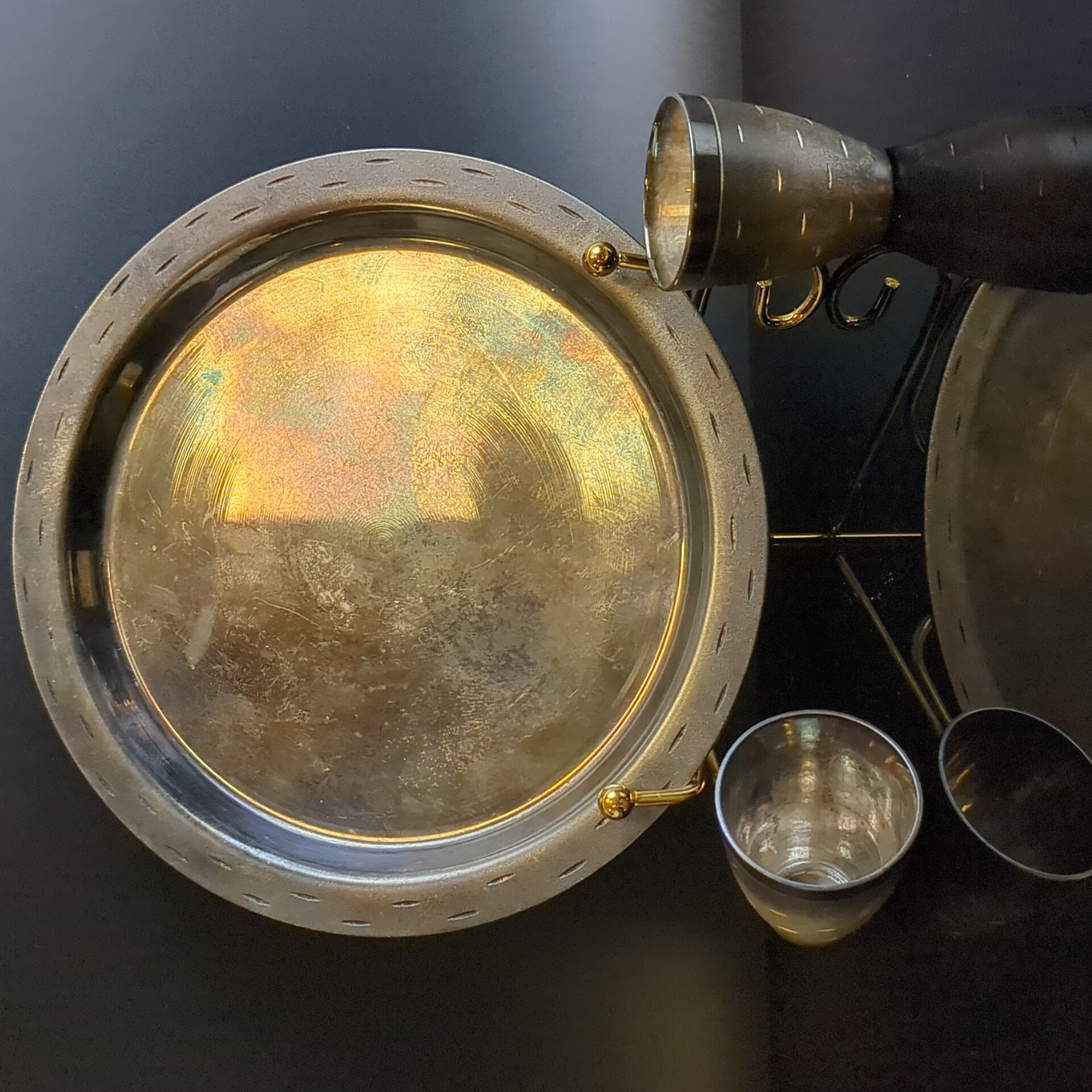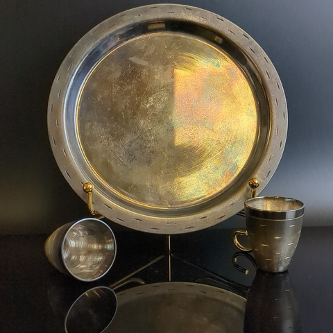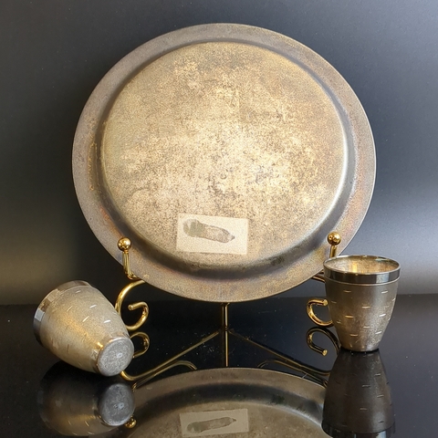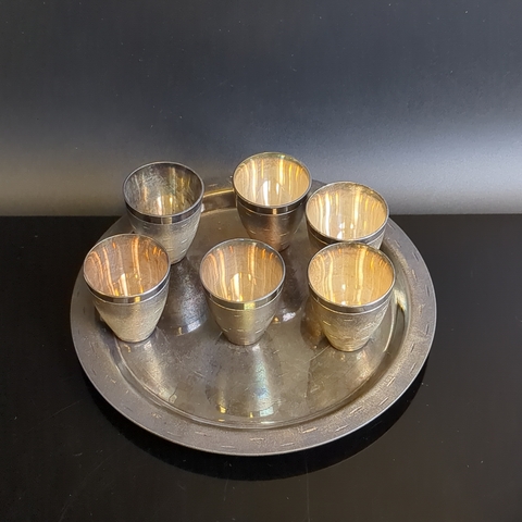 Коньячный набор "Берёзка" - 6 стопок и подносик - мельхиор серебрение - СССР