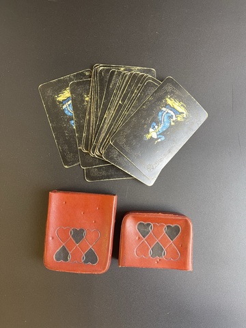 Кожаный чехол для игральных карт и колода карт 36 штук СССР. Следы использования. Состояние на фото
