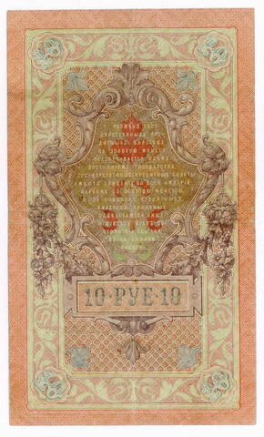 Билет 10 рублей образца 1909 года находился в обращении до 1 октября 1922 года.