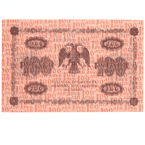 Кредитный билет 100 рублей 1918 года АГ - 604 (кассир Жихарев) VF
