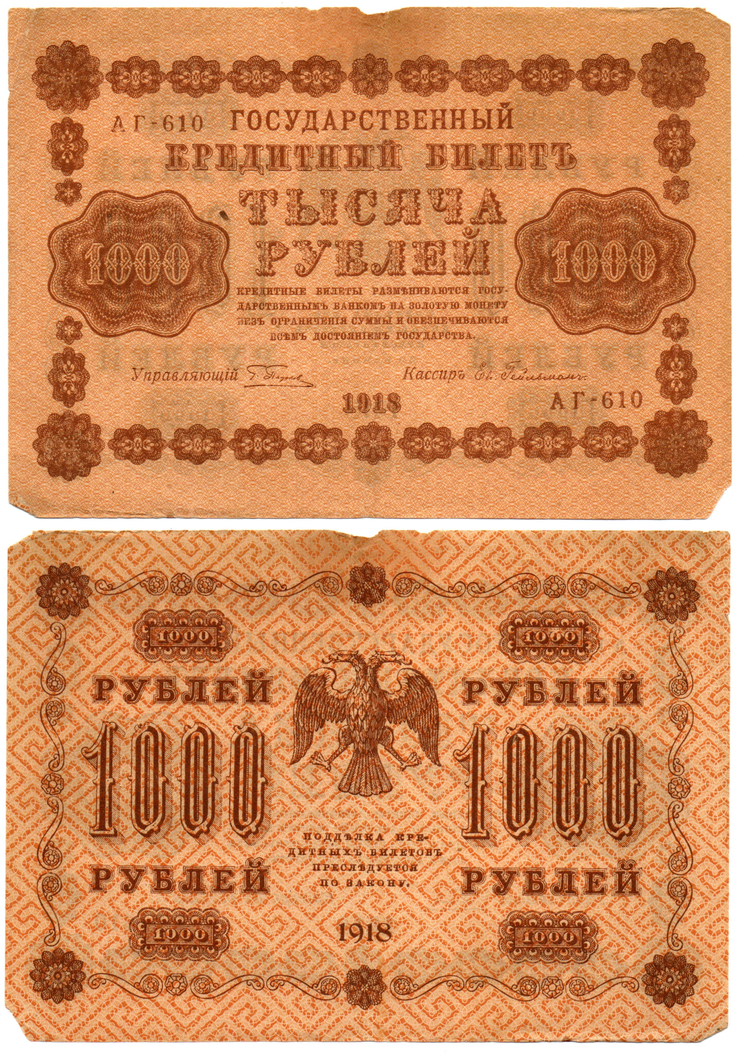 Кредитный билет 1000 рублей 1918 г. АГ-610. F